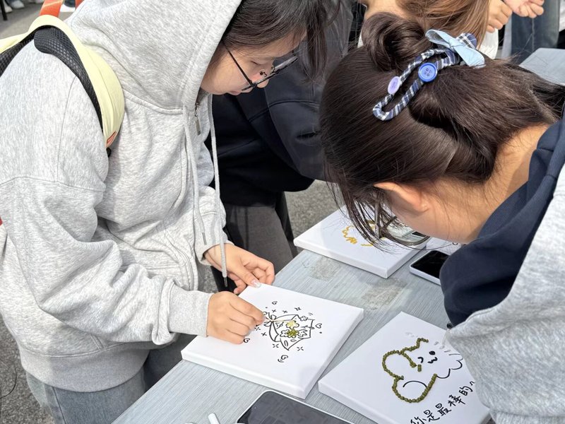 活动以三大趣味游戏为核心展开:在《落叶书签》环节,学生自主收集秋日落叶,在工作人员协助下完成压平、塑封与装饰,将秋景定格为实用书签;《五谷盲盒答》中,学生抽取包含粮食认知、节约行动等类别的问题盲盒,答题成功可获抽奖卡,答错则由工作人员科普相关知识;《粮食贴画》活动里,参与者用大米、红豆等不同谷物,在画板上创作特色贴画,直观感受粮食的多样形态。活动期间,各部门分工明确,组织部维持秩序、宣传部记录现场、综合办公室负责奖品兑换,确保活动有序推进。