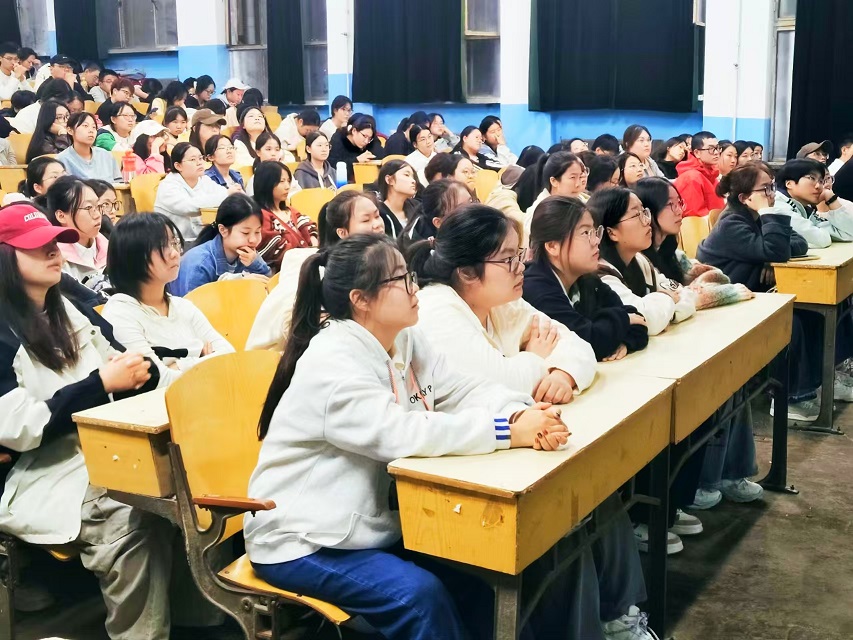 讲座中,王露露通过生动幽默的提问,与同学们互动,深入剖析行业发展及优势。通过PPT课件,她分享了多个真实案例和面试经历,让同学们了解到当下的形势,能够更好地培养学生在商业决策中的分析与管理能力。现场气氛热烈,同学们积极回应老师的提问,不时记录重点内容。