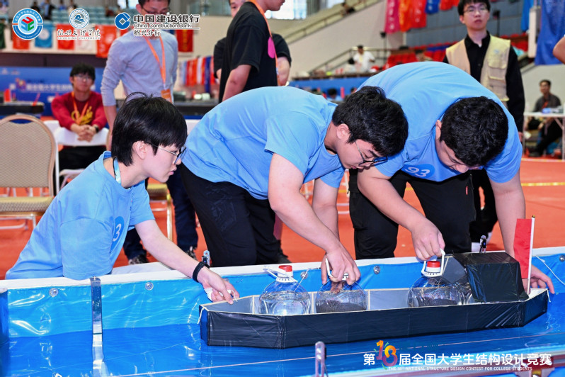 本届赛题《乌篷船模型结构设计与制作》以乌篷船为原型,要求参赛者设计优化船体流线型、提升其抗撞击性能,同时考虑平衡其载重与航行能力,对结构设计的科学性与创新性提出了极高要求。从备战省赛再到总决赛,学院、系为参赛队伍提供了全方位的坚实保障,参赛学生和指导老师更是放弃课余休息和假期,反复研究、攻坚克难,不断优化方案,认真打磨比赛的每一个环节,展现了极高的专业素养和紧密协作的团队精神。