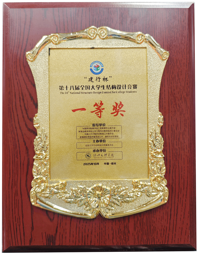 10月15日-19日,“建行杯”第十八届全国大学生结构设计竞赛总决赛在绍兴文理学院举行。我院建工系学子王宝鑫、王文杰和袁子昕组成的代表队凭借卓越的结构创新及扎实的动手能力,与来自清华大学、同济大学、浙江大学、东南大学及哈尔滨工业大学等119所高校共120支队伍同台竞技,展开角逐,最终脱颖而出,斩获国赛一等奖(全国第五、江苏省第一),再一次刷新历史。