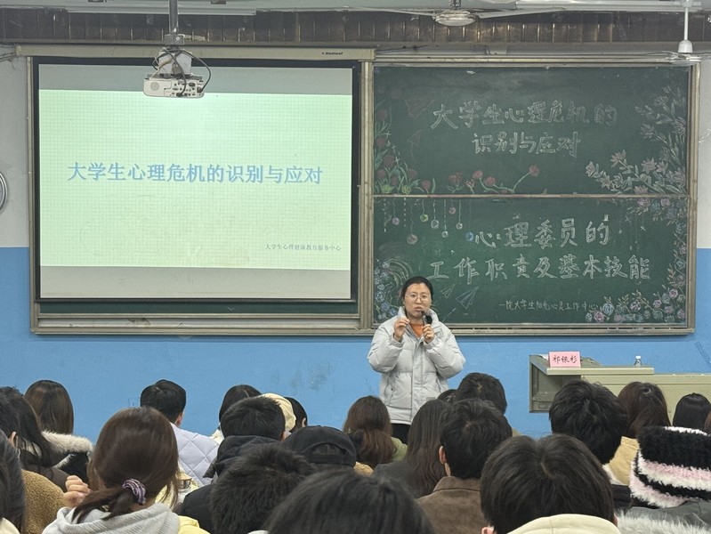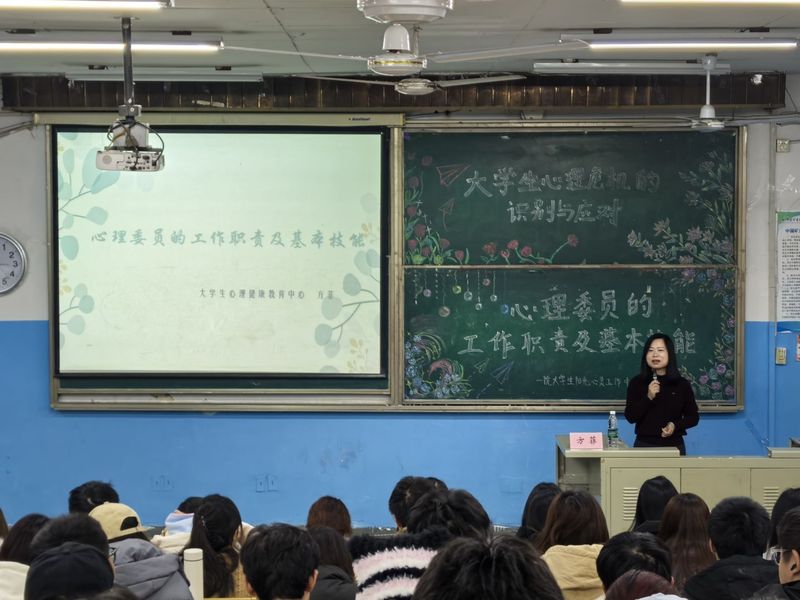 培训过程中,方菲老师围绕“心理委员的工作职责及基本职能”核心内容展开细致讲解。结合大学生校园生活实际与心理工作特点,方菲老师首先清晰界定了心理委员的角色定位,明确其作为班级心理健康“宣传员、组织者、助人者、信息员”的四重身份,系统拆解了心理委员的职业定位,让在场心理委员精准把握工作边界与核心方向。 而在“大学生心理危机的识别与应对”主题中,祁银杉老师从心理危机的常见类型入手,细致拆解学业压力、情感困扰、人际矛盾等引发心理危机的典型诱因,通过真实案例具象化讲解焦虑过度、情绪低落、行为异常等危机预警信号,引导心理委员学会从日常言行、社交表现等细节中捕捉潜在危机,区分一般心理困扰与严重心理危机的差异,避免遗漏或误判。