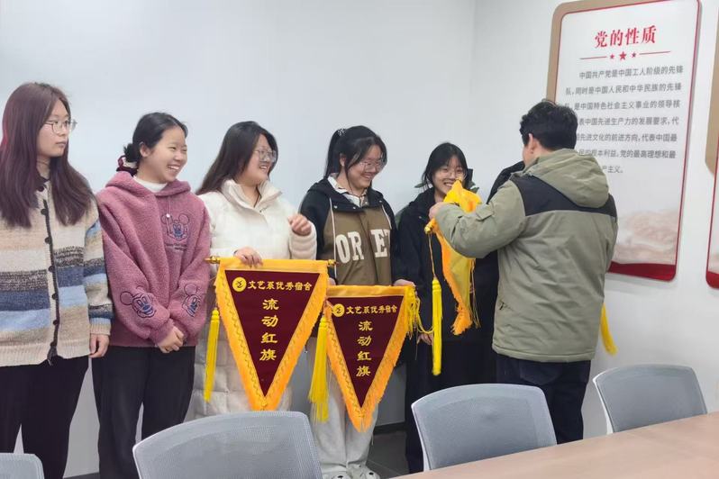 在优秀宿舍表彰会上,杨安华公布获奖宿舍名单,表扬其在宿舍卫生和安全上的扎实成效,鼓励获奖宿舍珍惜荣誉、继续保持,带动身边同学共同做好宿舍建设。最后,他依次为获奖宿舍颁发流动红旗。