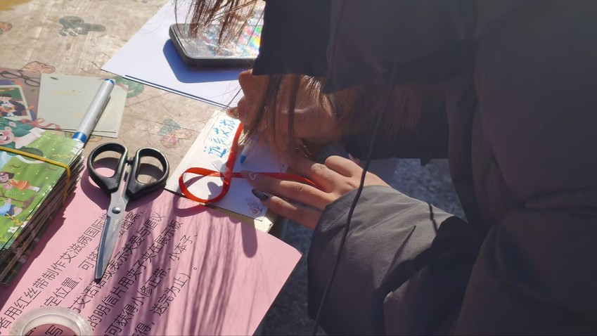 活动以“寓教于乐”为核心,设置三大特色互动环节。《拆盒知艾,防艾暖心》中,参与者从盲盒墙抽取知识选题,答题赢取主题奖品,错题可获提示机会;《盲盒艾知,套圈你我》通过抽题闯关解锁套圈资格,趣味互动中强化知识记忆;《红丝系爱,明信传知》里,同学们用红丝带制作防艾标志,在明信片写下关爱倡议并集中展示,传递包容理念。各部门分工明确、协作有序,工作人员热情引导,现场氛围活跃,参与者在轻松体验中纠正认知误区、掌握防护技能。