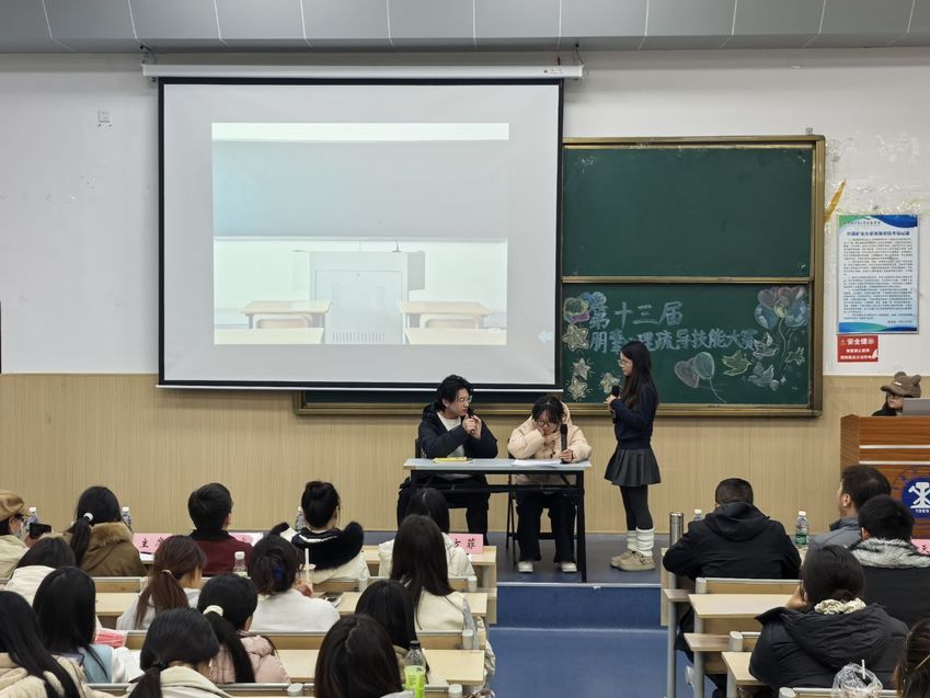 为夯实学院心理健康教育能力,提升各系心理委员与朋辈辅导员的心理疏导专业素养,院心理中心于12月20日在一南101举办第十三届朋辈心理疏导技能大赛复赛。院心理中心全体负责老师、各系专职辅导员莅临指导,各系心理委员、朋辈参赛人员及院心理工作中心成员到场观摩比赛。