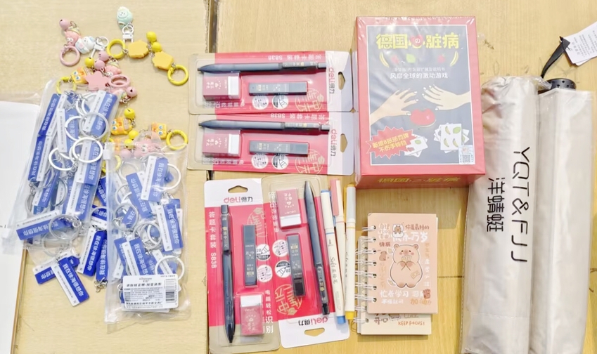 本次活动分为校园寻宝与现场游戏挑战两大板块。工作人员提前将120张定制礼物卡藏匿于校园教学楼、宿舍楼、主干道等区域,同学们以探索者的姿态穿梭校园,在寻觅中发现校园之美。活动主场地菜鸟驿站前广场设置心理健康知识答题游戏,围绕世界睡眠日、全国大学生心理健康日等重要节点设计题目,参与者在趣味答题中学习健康知识、提升沟通与协作能力,成功挑战即可抽取礼物卡。活动奖品涵盖充电宝、四六级耳机、学院定制水杯、各类文具及生活好物,兑换流程规范有序,现场氛围热烈和谐。